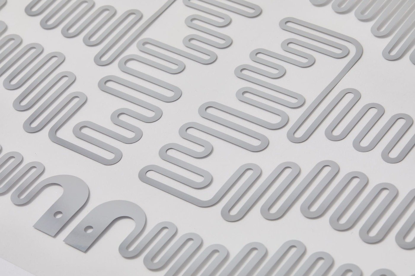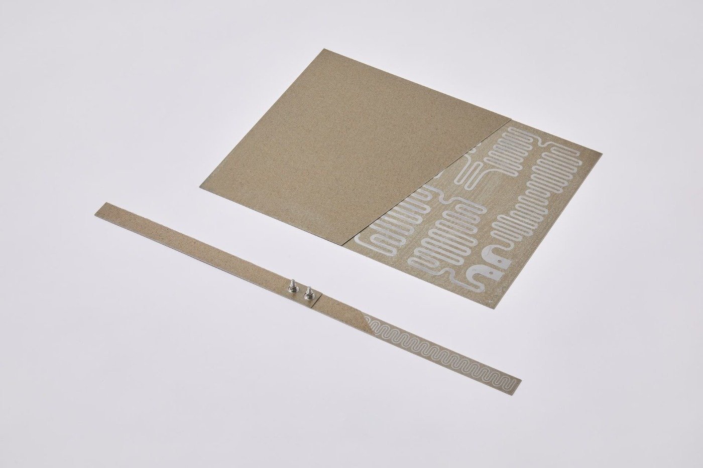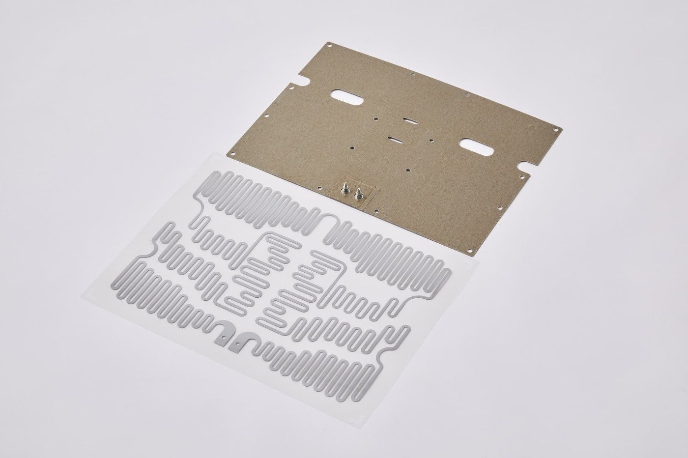 フラットマイカヒーターはステンレス箔を基本にした発熱体を絶縁材であるマイカ(雲母)で挟み込んだヒーターです。
