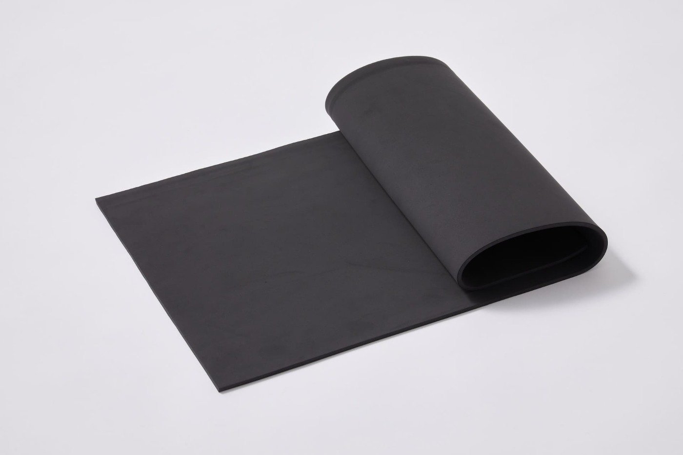 シートタイプの断熱材(難燃シリコンスポンジ SE-800:黒))です。厚みは5mmとなります。
